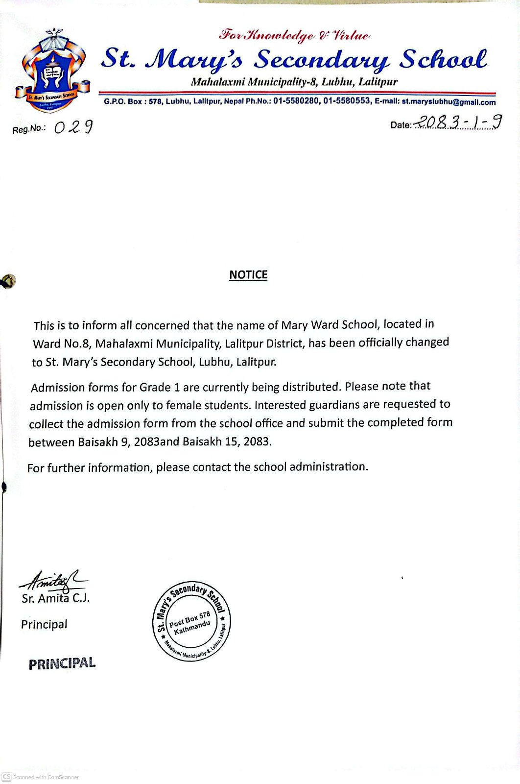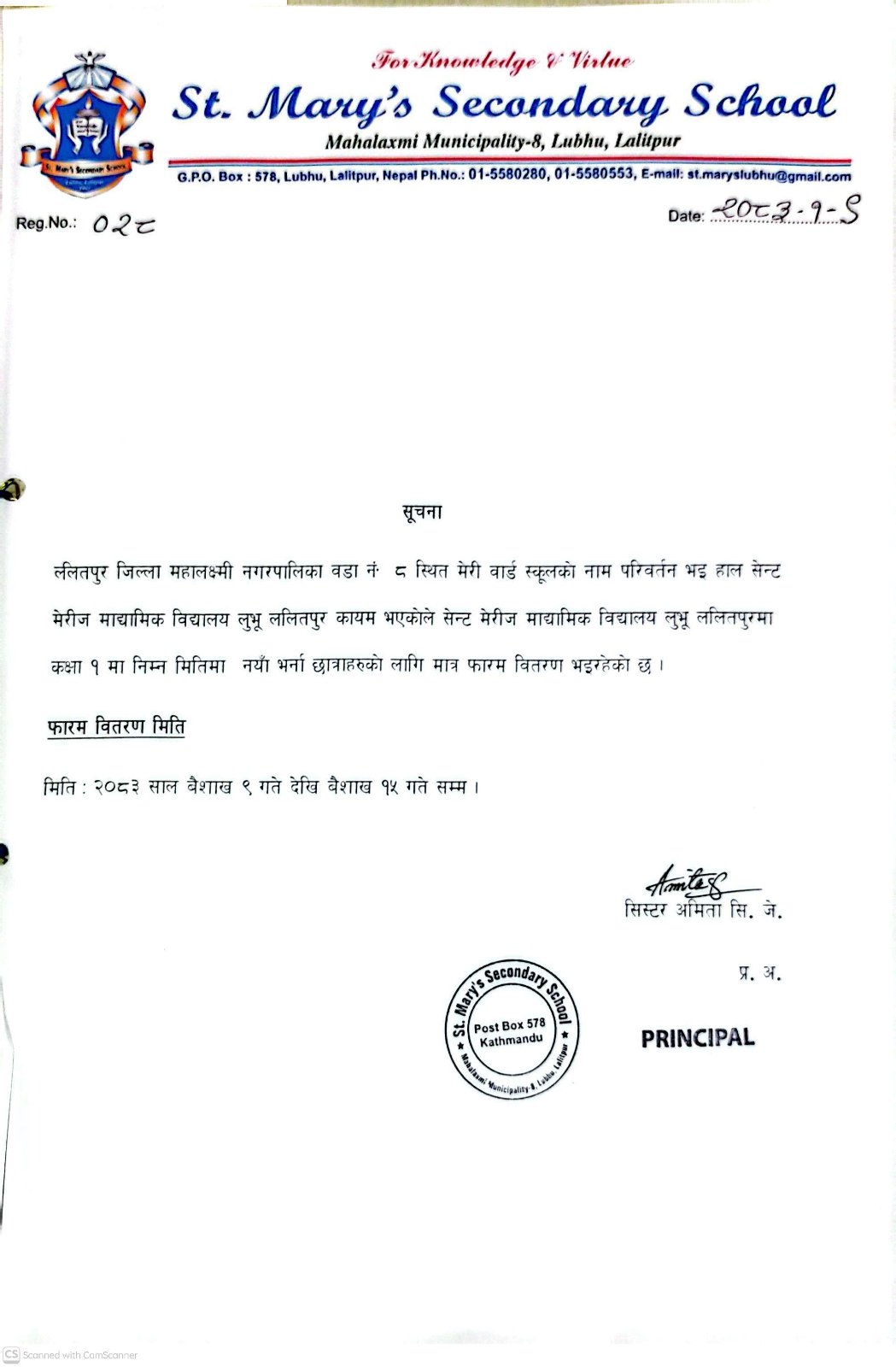 विद्यालयको नाम परिवर्तन सम्बन्धि सुचना