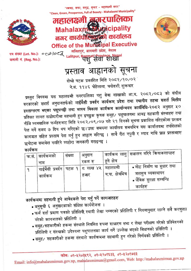 » प्रस्ताव आव्हानको सुचना दोश्रो पटक प्रकाशित मिति २०८२/१०/०२