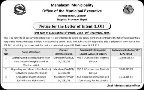 Notice for Letter of Intent (LOI) First date of Publication 19th December 2025