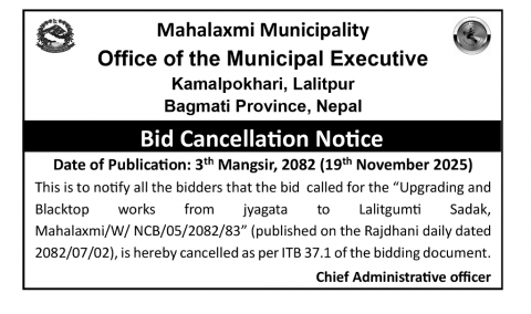 Bid Cancellation Notice Date of Publication : 19th Nov 2025